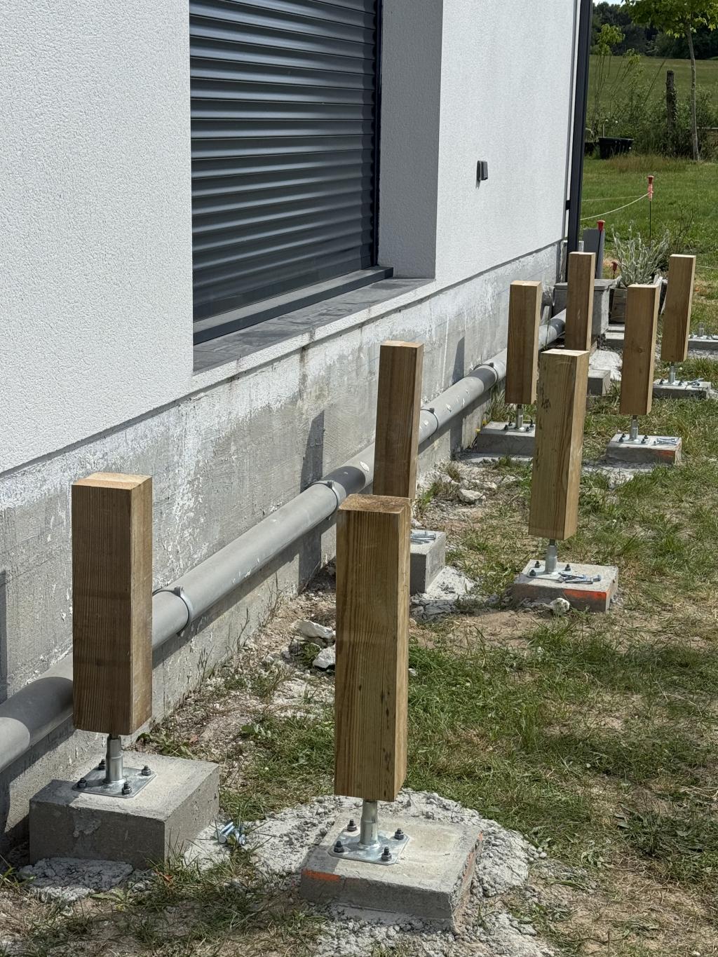 🔨 Le chantier a commencé par la pose de plots béton, garants d’une stabilité à toute épreuve.