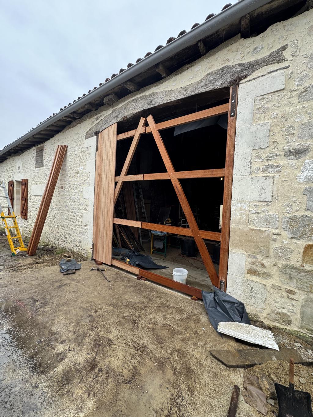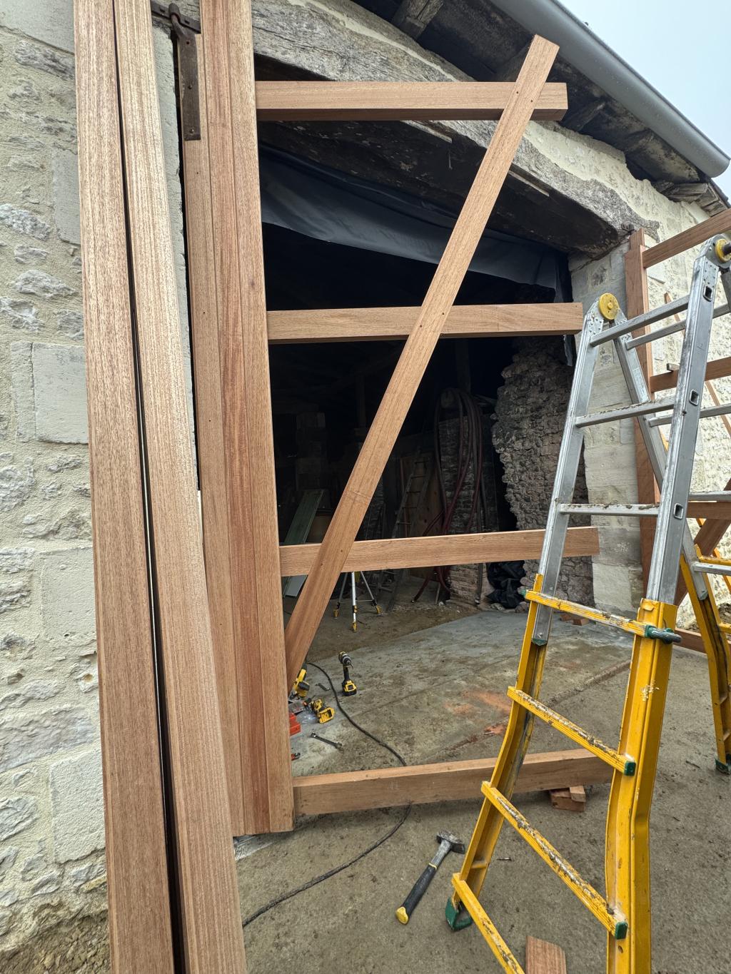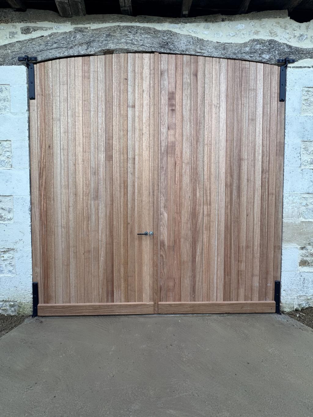 Sur ce chantier à Polignac, nous avons conçu et fabriqué une porte de chai en bois massif, entièrement sur mesure, pensée pour respecter l’existant tout en assurant solidité et longévité.