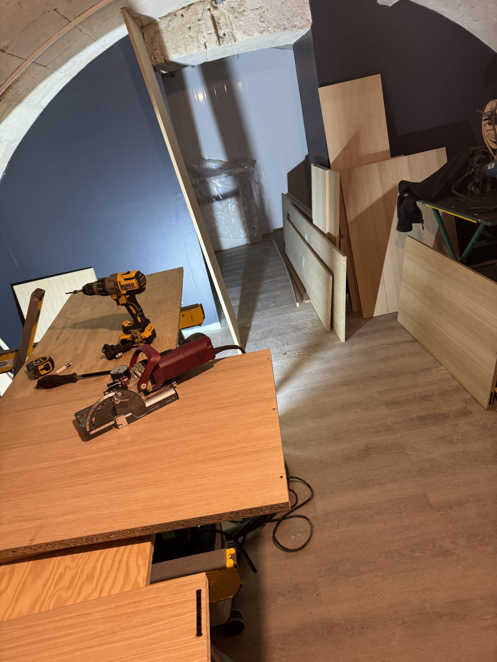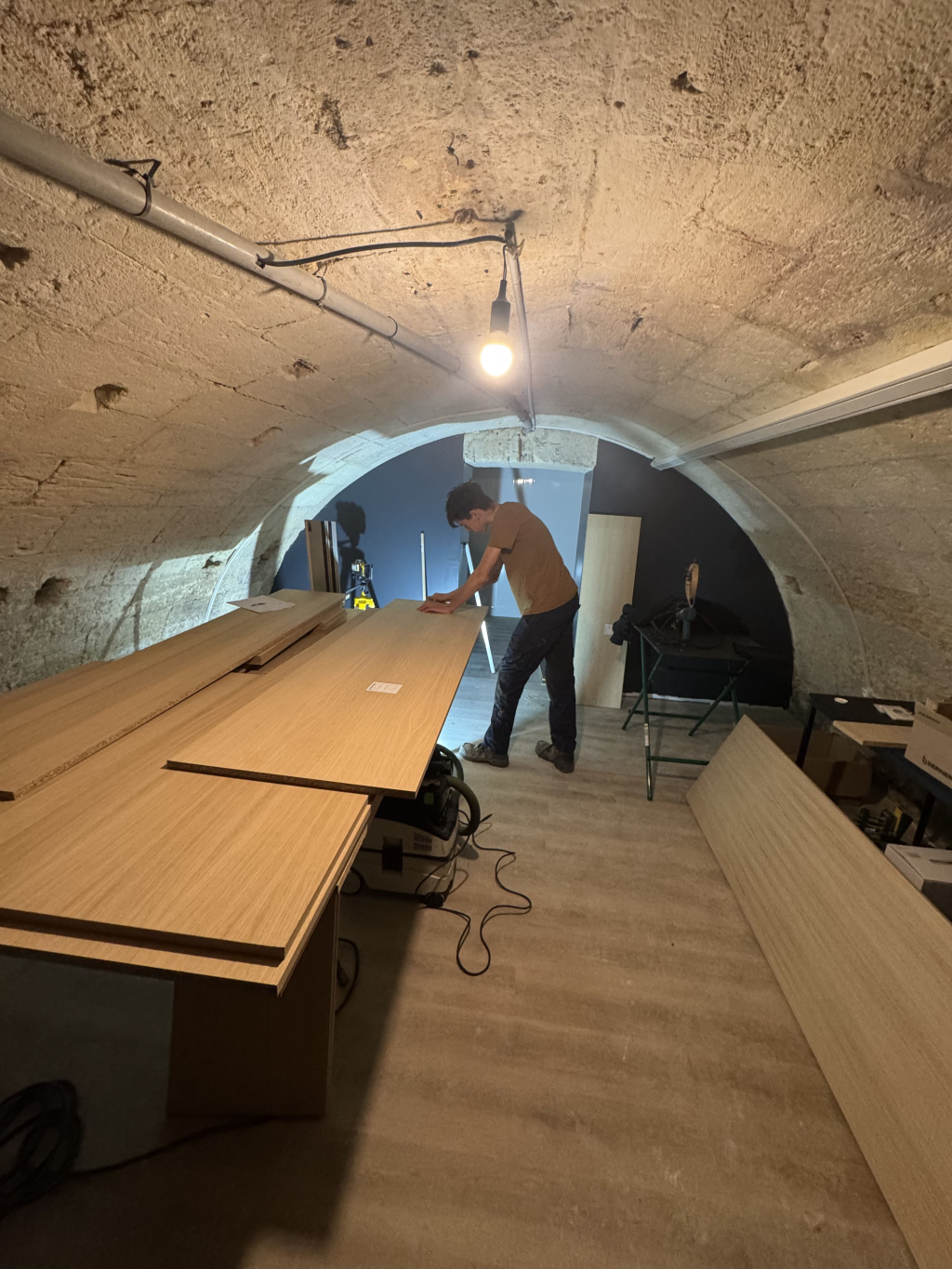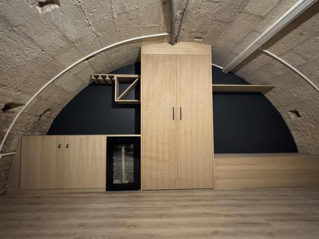 Cette semaine, nous avons eu le plaisir de transformer une cave bordelaise en un espace à la fois fonctionnel et esthétique. Voici les éléments réalisés :