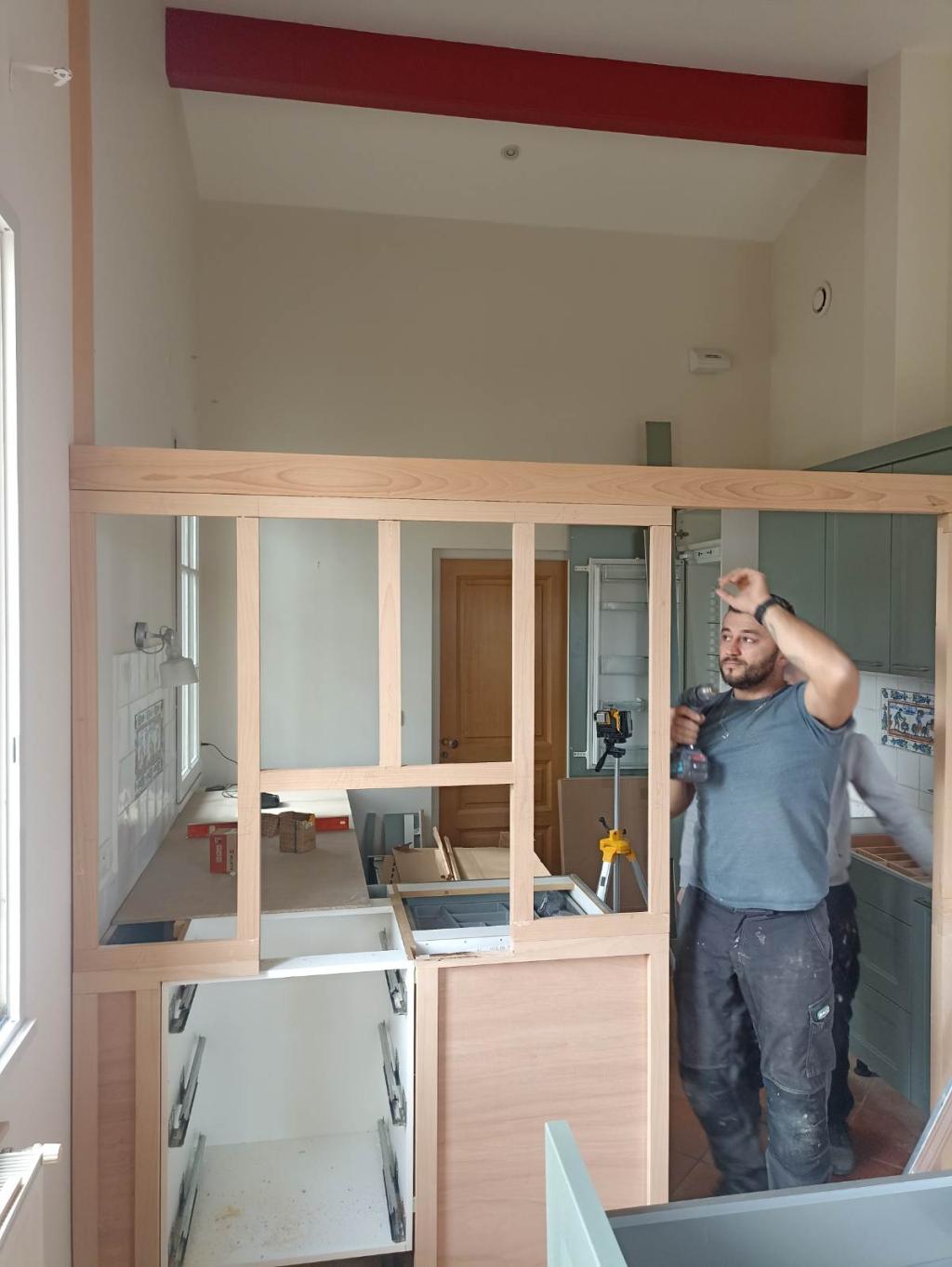Une fois fabriquée, direction le chantier ! La verrière a été installée avec le plus grand soin pour apporter clarté et modernité tout en préservant une belle séparation des espaces. La porte coulissante, aussi pratique qu'élégante, permet un gain de place et un charme intemporel.
