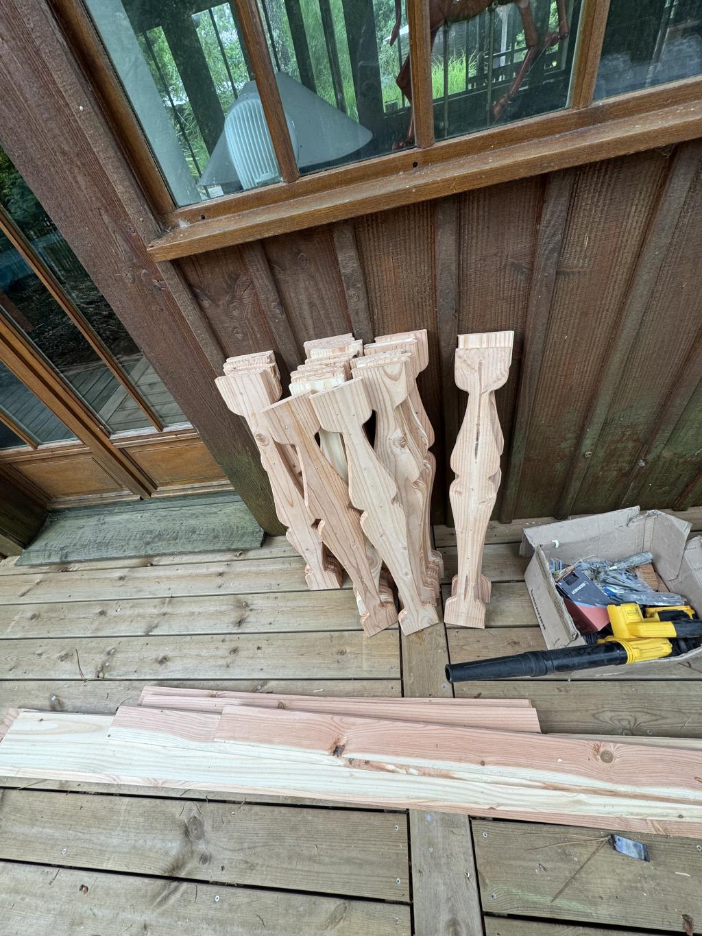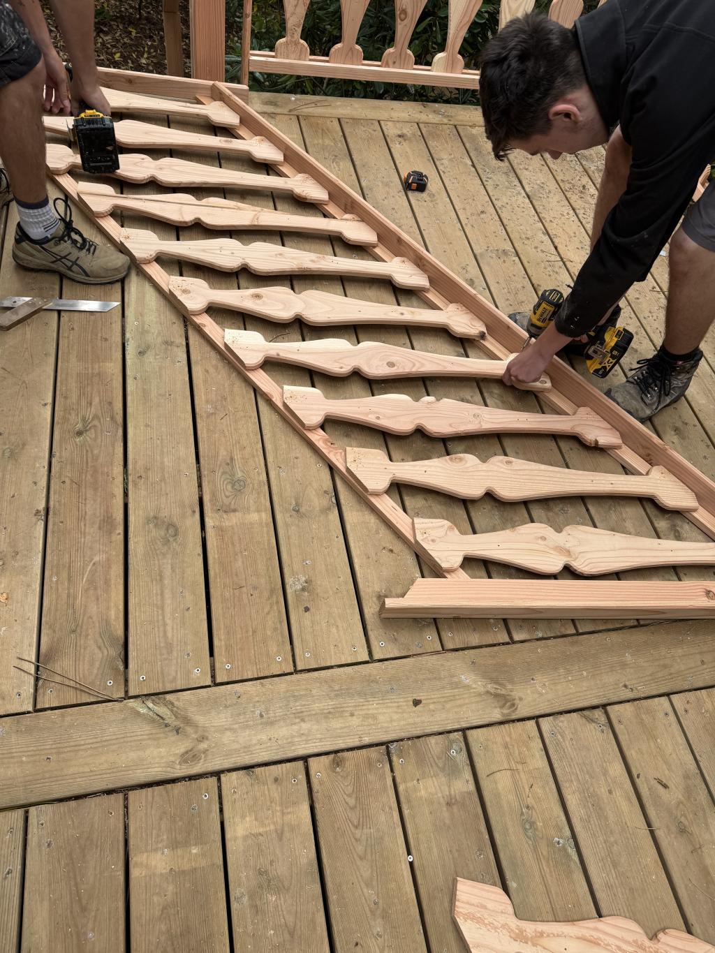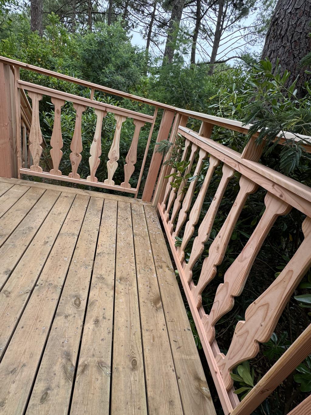 > Tout commence par une belle matière première : du bois soigneusement sélectionné, travaillé avec précision dans notre atelier. Chaque balustre a été découpée, façonnée, poncée, assemblée… à la main, dans le respect des formes d’origine et de l’esprit du lieu.