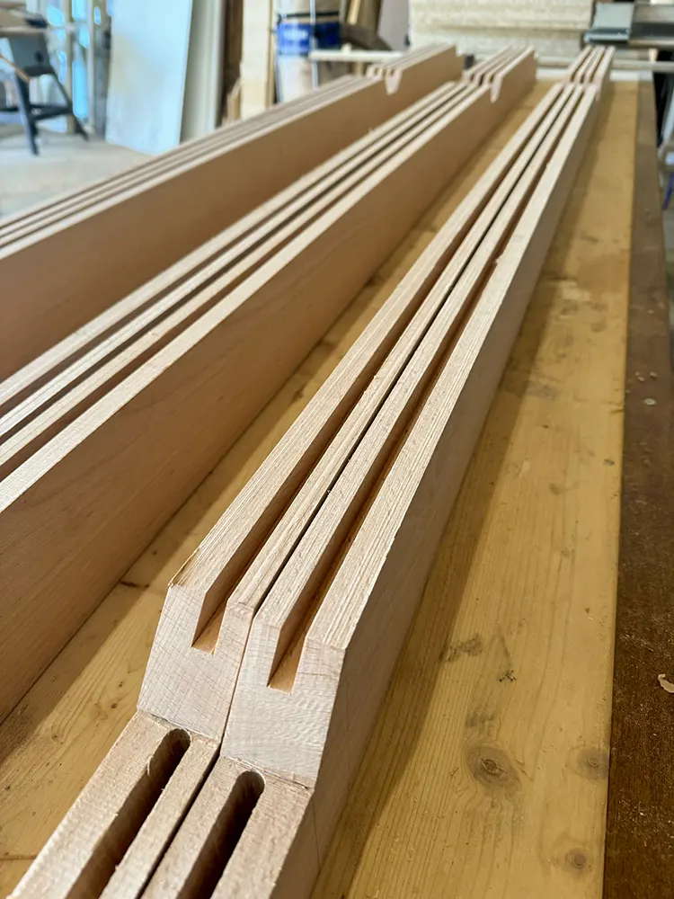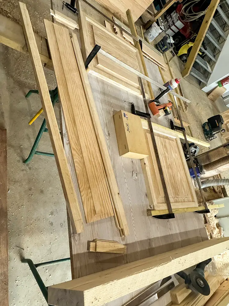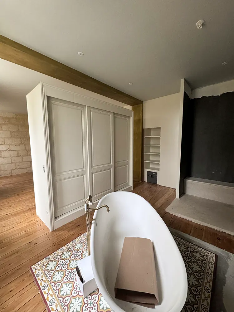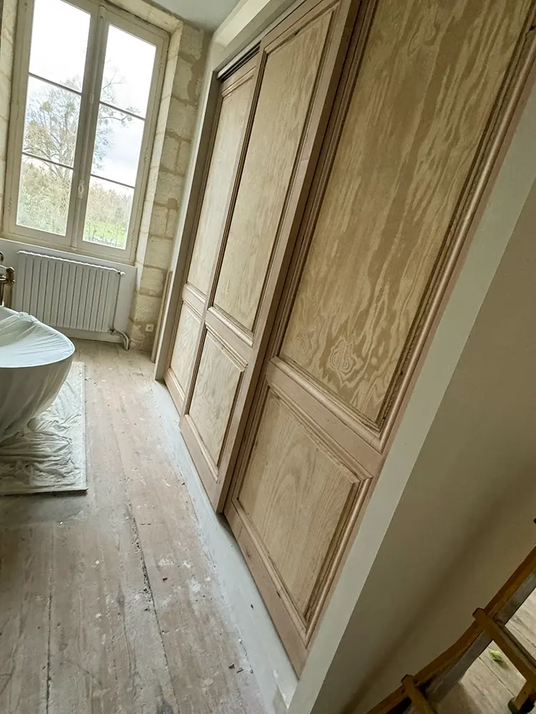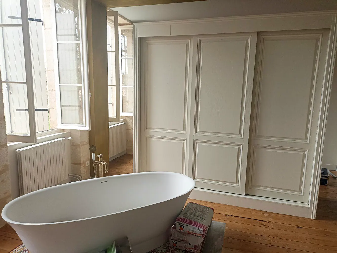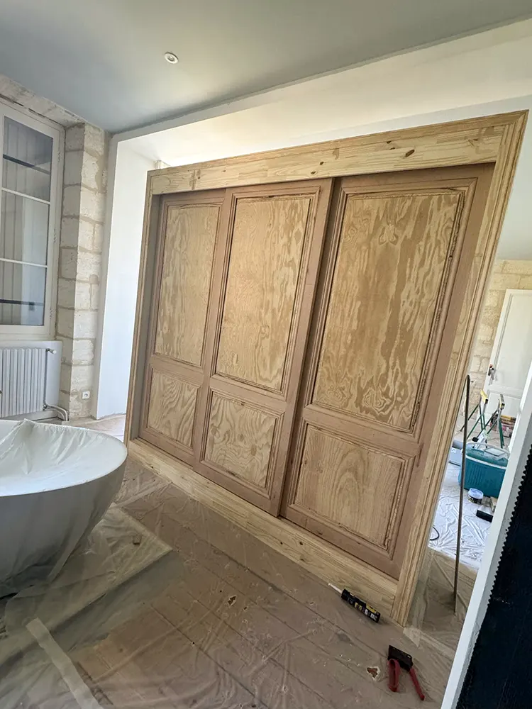 Notre processus de création est soigneusement orchestré, démarrant par le tronçonnage précis du bois brut sélectionné avec le plus grand soin. Ensuite, vient le délicat délignage, où chaque planche est méticuleusement ajustée pour assurer une uniformité parfaite. Le corroyage, étape cruciale de notre métier, consiste en un travail d'orfèvre alliant dégauchissage et rabotage, permettant d'obtenir des surfaces impeccables et des dimensions exactes. C'est là que prend forme la véritable essence de nos portes, où la texture naturelle du hêtre se révèle dans toute sa splendeur. Le toupiage, véritable ballet technique, est l'ultime étape où chaque détail prend vie. Que ce soit pour les tenons assurant la solidité de la structure, les mortaises parfaitement ajustées pour une stabilité sans faille, les rainures astucieusement conçues pour un assemblage impeccable, ou les feuillures soigneusement réalisées pour accueillir les panneaux, chaque geste est empreint de précision et de savoir-faire. Le résultat ? Des portes coulissantes en hêtre d'une élégance intemporelle, alliant fonctionnalité et esthétique, prêtes à sublimer votre espace de salle de bain avec une chaleur incomparable. Chez nous, chaque création est une histoire à part entière, façonnée avec passion et dévouement, pour vous offrir un véritable bijou de menuiserie sur mesure.