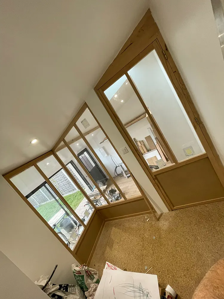 Chaque projet commence par une vision, et c'est là que notre équipe entre en jeu. Nous travaillons en étroite collaboration avec nos clients pour comprendre leurs besoins et leurs désirs, afin de créer des verrières qui transcendent leurs attentes. La première étape de notre processus est le tronçonnage, où le bois brut est découpé avec une précision millimétrée pour créer les différentes pièces nécessaires à la verrière. Ensuite, vient le délignage, où les planches sont coupées dans le sens des fibres pour obtenir des pièces de bois droites et régulières. Une fois les pièces préparées, nous passons au corroyage, qui comprend le dégauchissage et le rabotage. C'est là que chaque pièce est soigneusement ajustée et nivelée pour garantir un ajustement parfait une fois assemblée. Le toupiage est une étape cruciale de notre processus, où les tenons, les mortaises, les rainures et les feuillures sont réalisés avec une précision chirurgicale. Ces détails sont essentiels pour assurer la solidité et l'esthétique de la verrière une fois installée. Enfin, vient le moment tant attendu de l'assemblage et de la pose de la verrière. Nos artisans mettent tout leur savoir-faire et leur expertise pour garantir une installation impeccable, où chaque pièce s'emboîte parfaitement pour créer une structure harmonieuse et durable.